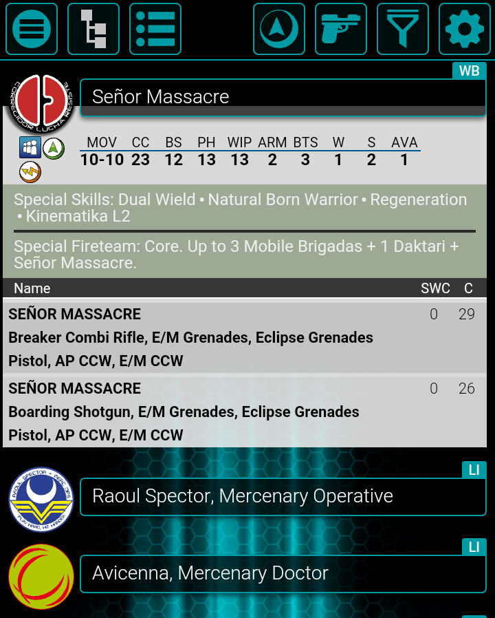 Ultra-Known character for Corregidoreans, who now have a very special Core Fireteam: Up to 3 Brigadas + Massacre + 1 Daktari. Of course, he will be de CC guy of the link but also you can use the Eclipse Grenades to cover the Daktaris while she brings back a Brigada or to throw 2 E/M grenades just to fuck off another link/HI/TAG,